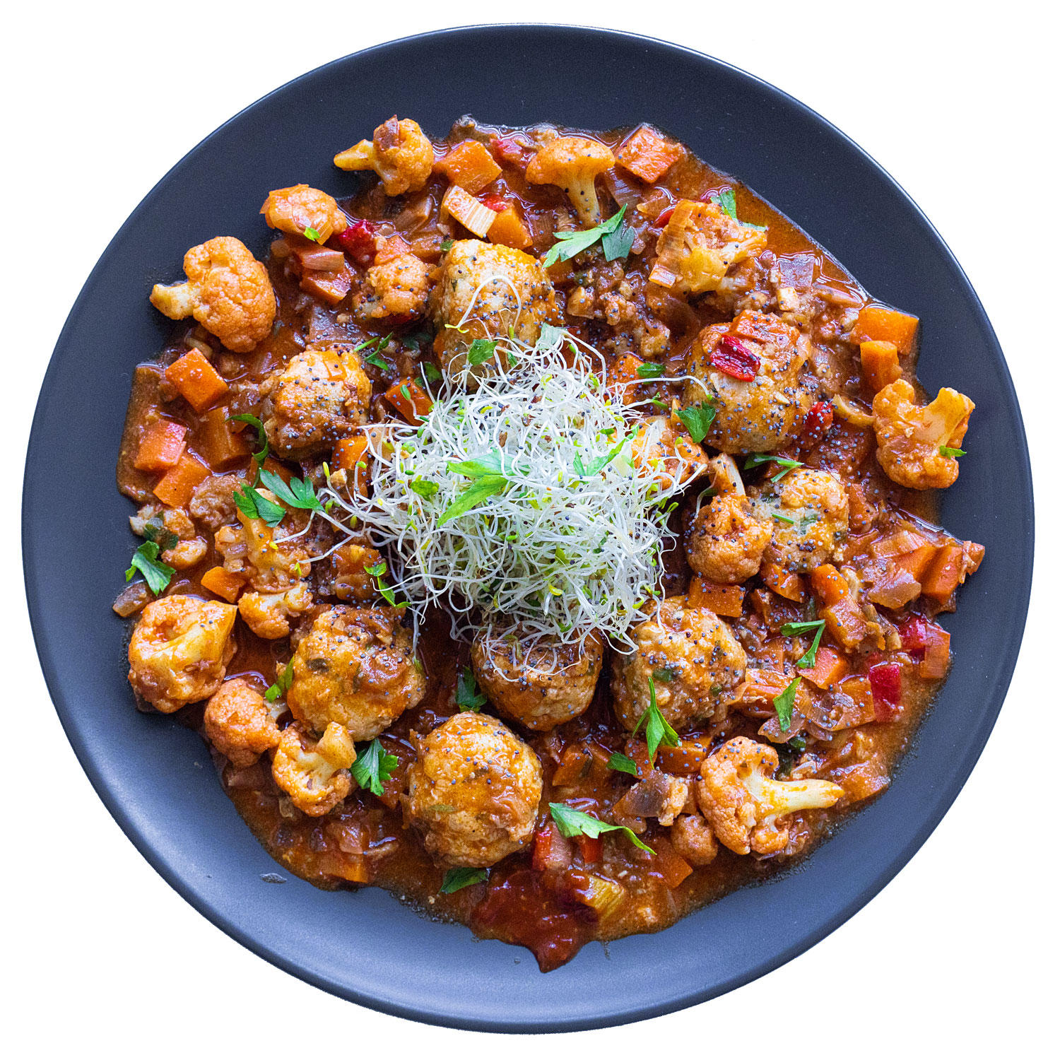 Cubre con agua hasta la mitad de la altura de las albóndigas + ¼ tsp sal y pon la tapa. Cuece durante 10 minutos o hasta que la salsa espese un poco. Prueba el punto de sal.
