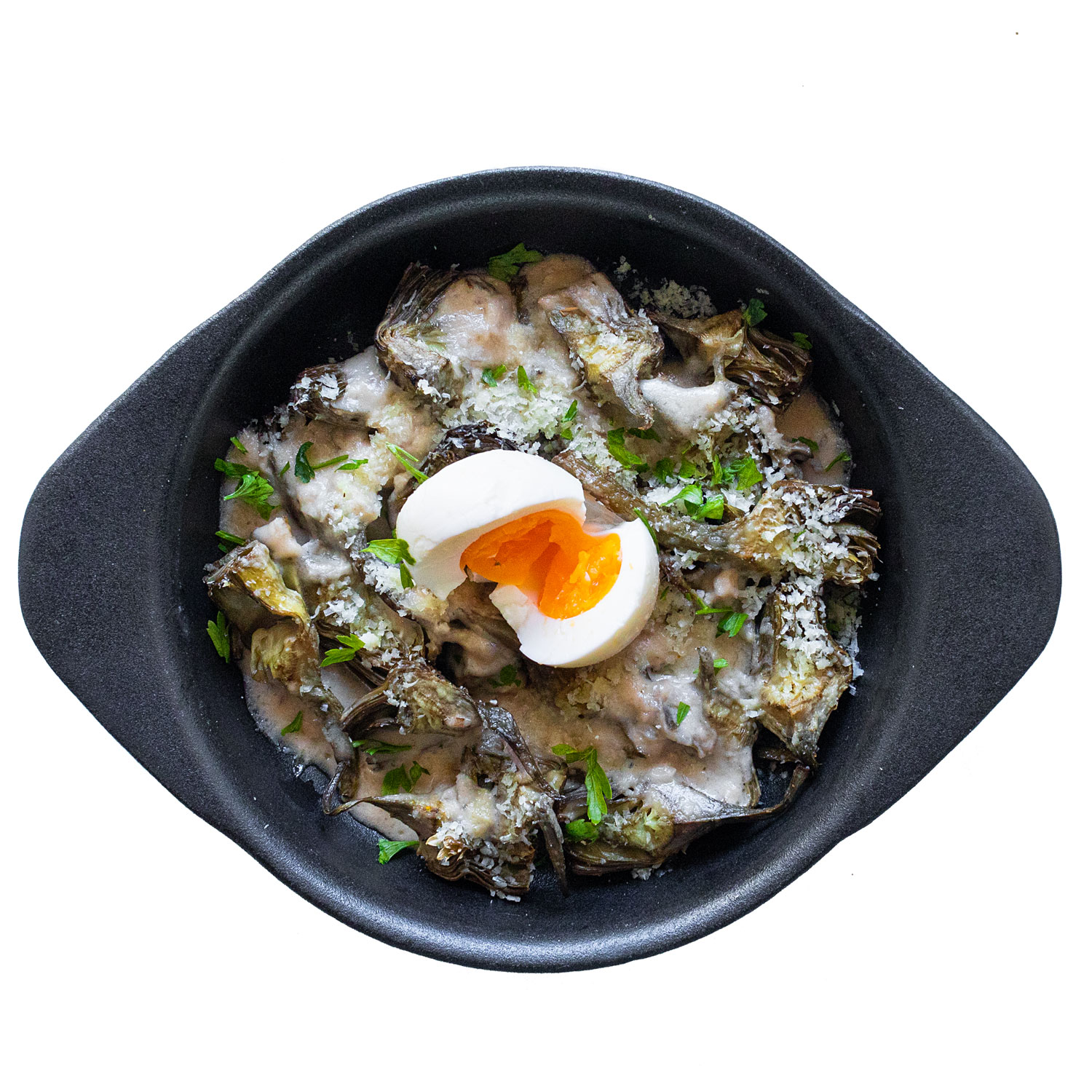 Sirve las alcachofas y acompaña con los huevos (sustituye por el aguacate para AIP).