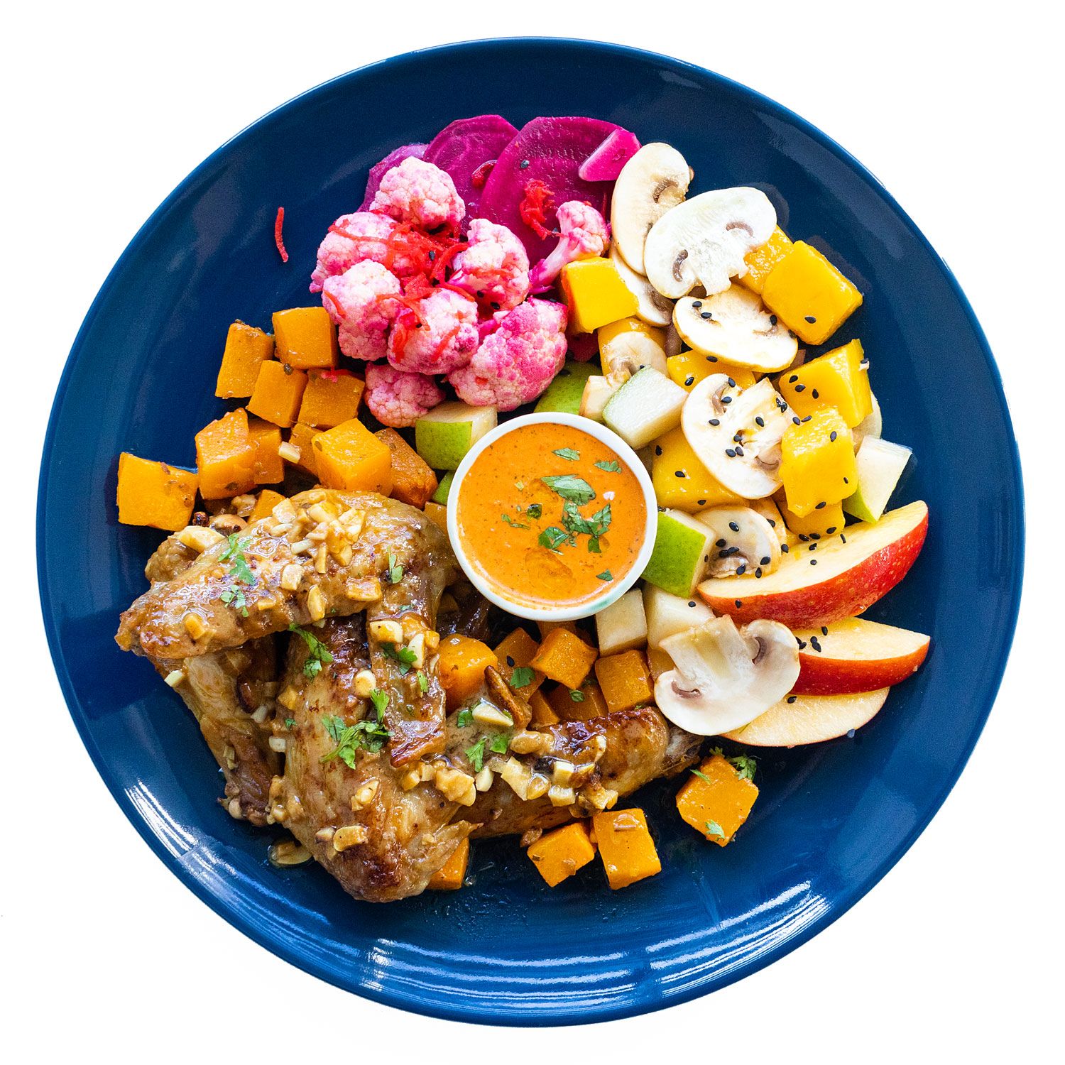 Sirve las alitas sobre la calabaza con el chimichurri. Acompaña con la ensalada.