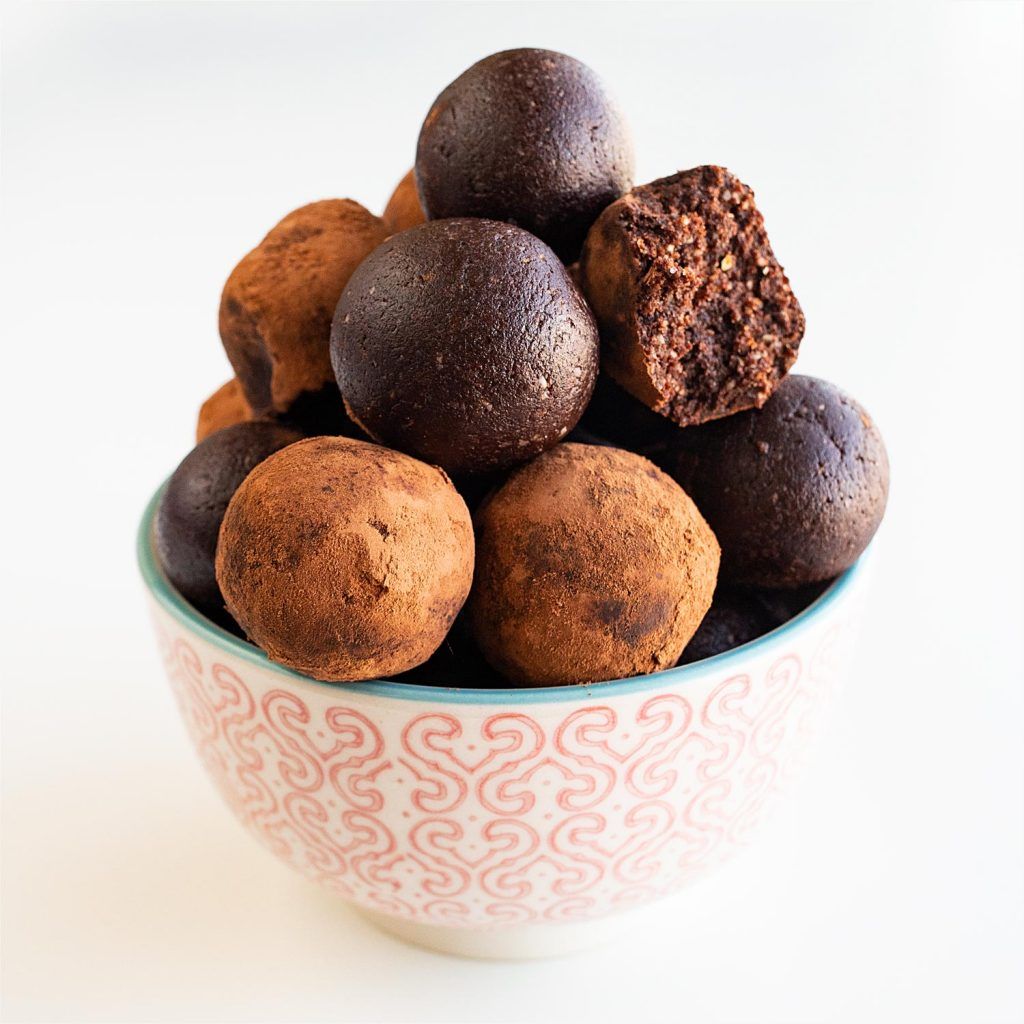 Forma bolitas de 2,5-3,5 cm de diámetro. Puedes dejarlas tal cual, o rebozarlas en un poco de cacao en polvo. Guárdalas en la nevera durante 10 días. También se pueden congelar.