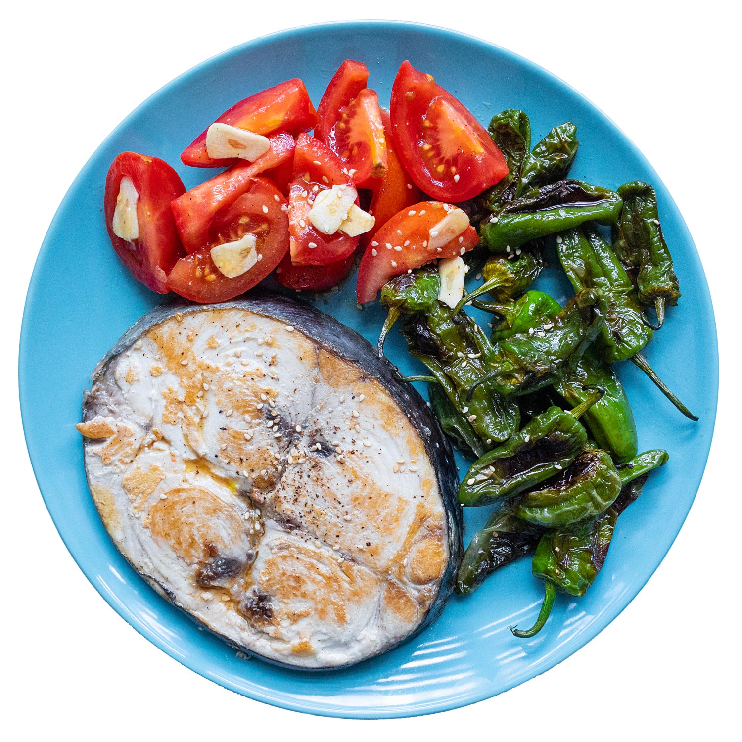 En la misma sartén, añade 1 Tbsp aceite de oliva. Salpimenta el bonito y cocina durante 2-3 minutos por cada lado (dependerá del grosor).