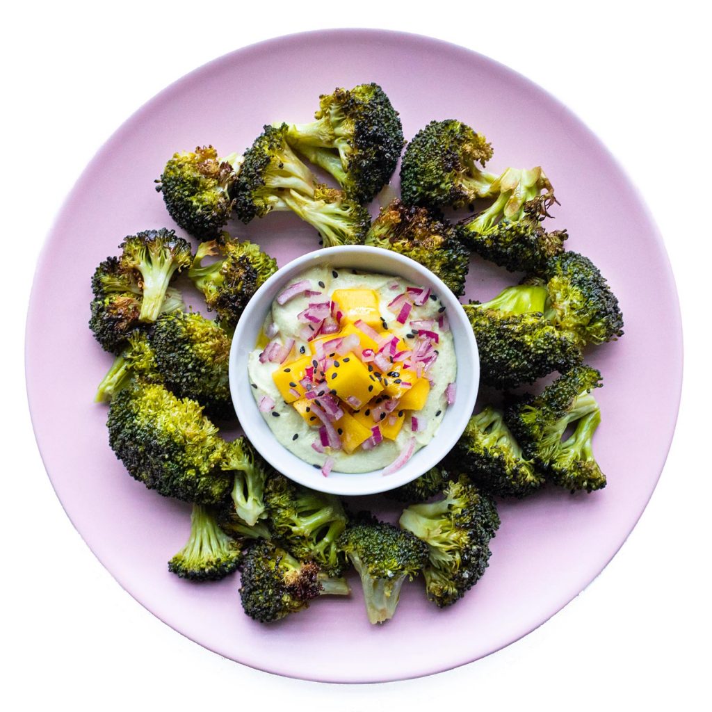 Tritura todos los ingredientes (excepto la cebolla + el mango + las semillas) durante 2-3 minutos o hasta que te quede una salsa lisa. Si te ha quedado muy densa, puedes añadir un poco más de agua. Prueba el punto de sal.