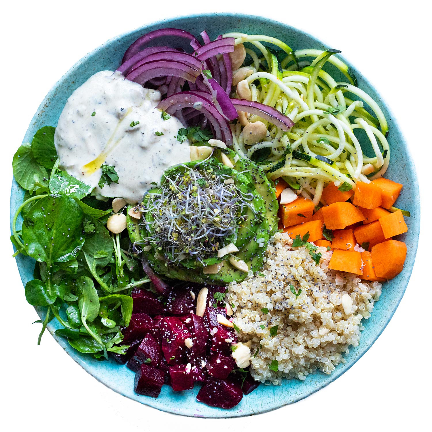 Aliña con la salsa. Decora con las semillas + los frutos secos y sirve.