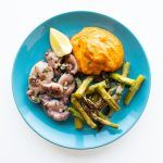 Chipirones con Espárragos Verdes y Puré de Calabaza