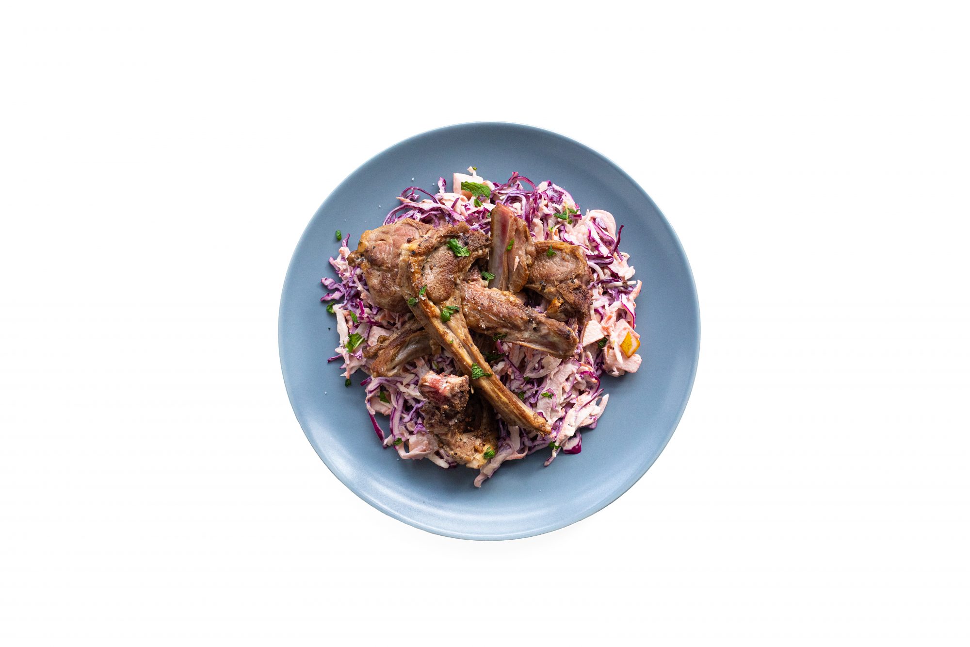 Sirve las chuletillas y acompaña con el coleslaw.