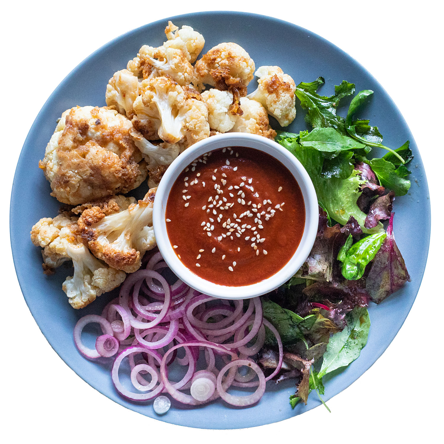 Sirve la coliflor con la salsa y acompaña con la ensalada.