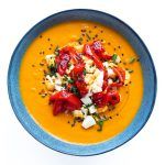 Tritura la calabaza + 1 ½ Tbsp aceite de oliva + el pimentón + la leche de coco + ¼ cup de agua con la batidora de mano, de vaso o el procesador durante 2-3 minutos o hasta que te quede una crema lisa. Prueba el punto de sal.