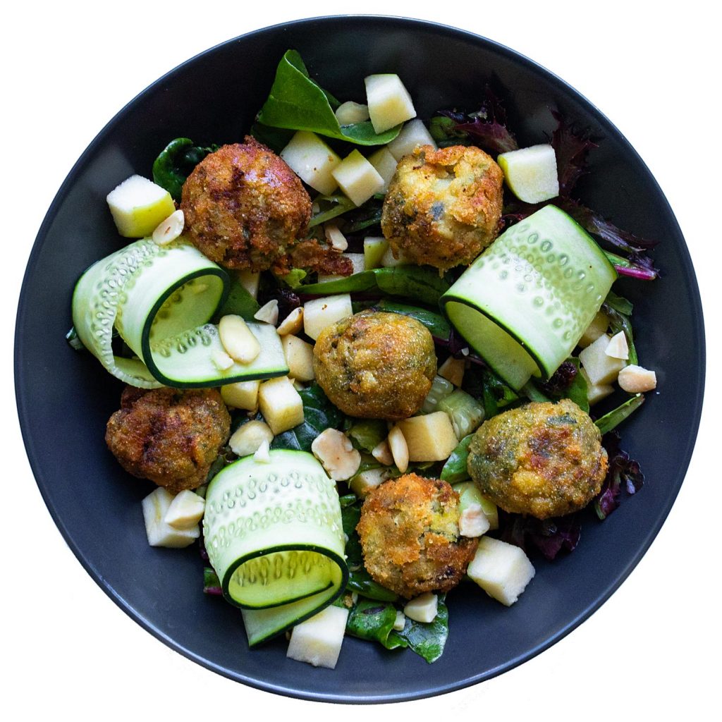 Embadurna tus manos con aceite y haz pequeñas bolitas de masa con la mezcla.