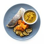 Lomo de Dorada con Puré de Boniato y Brócoli y Calabacín Plancha