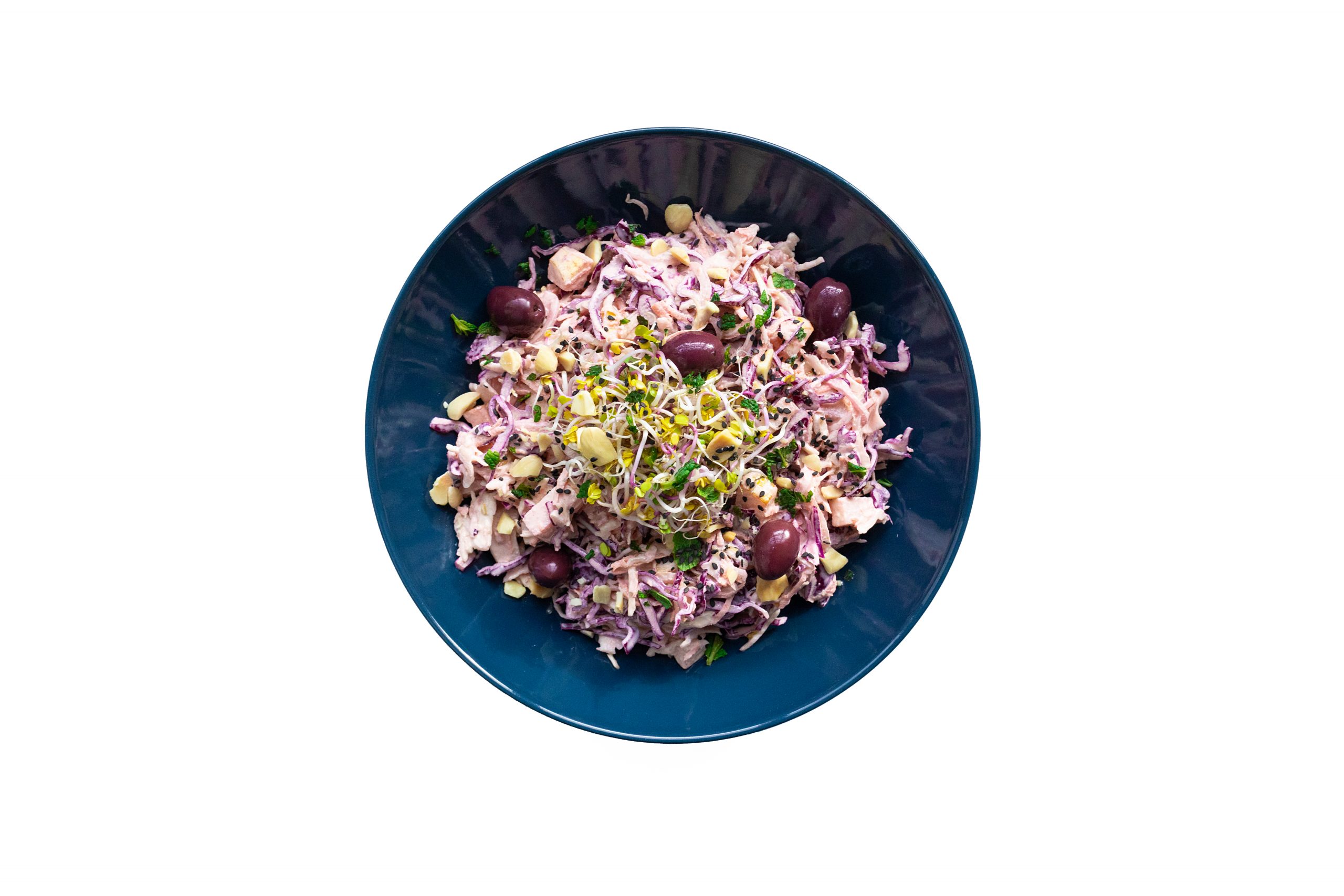 Mezcla en un bol todas las frutas y verduras + la salsa y remueve hasta integrar. Prueba el punto de sal. Para hacer más original tu coleslaw puedes utilizar una mitad de col blanca y otra de lombarda. Y si no la digieres bien en crudo, puedes cocerla o saltearla un poco previamente.