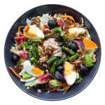 Mezcla en un bol todos los ingredientes. Aliña con la vinagreta y sirve.