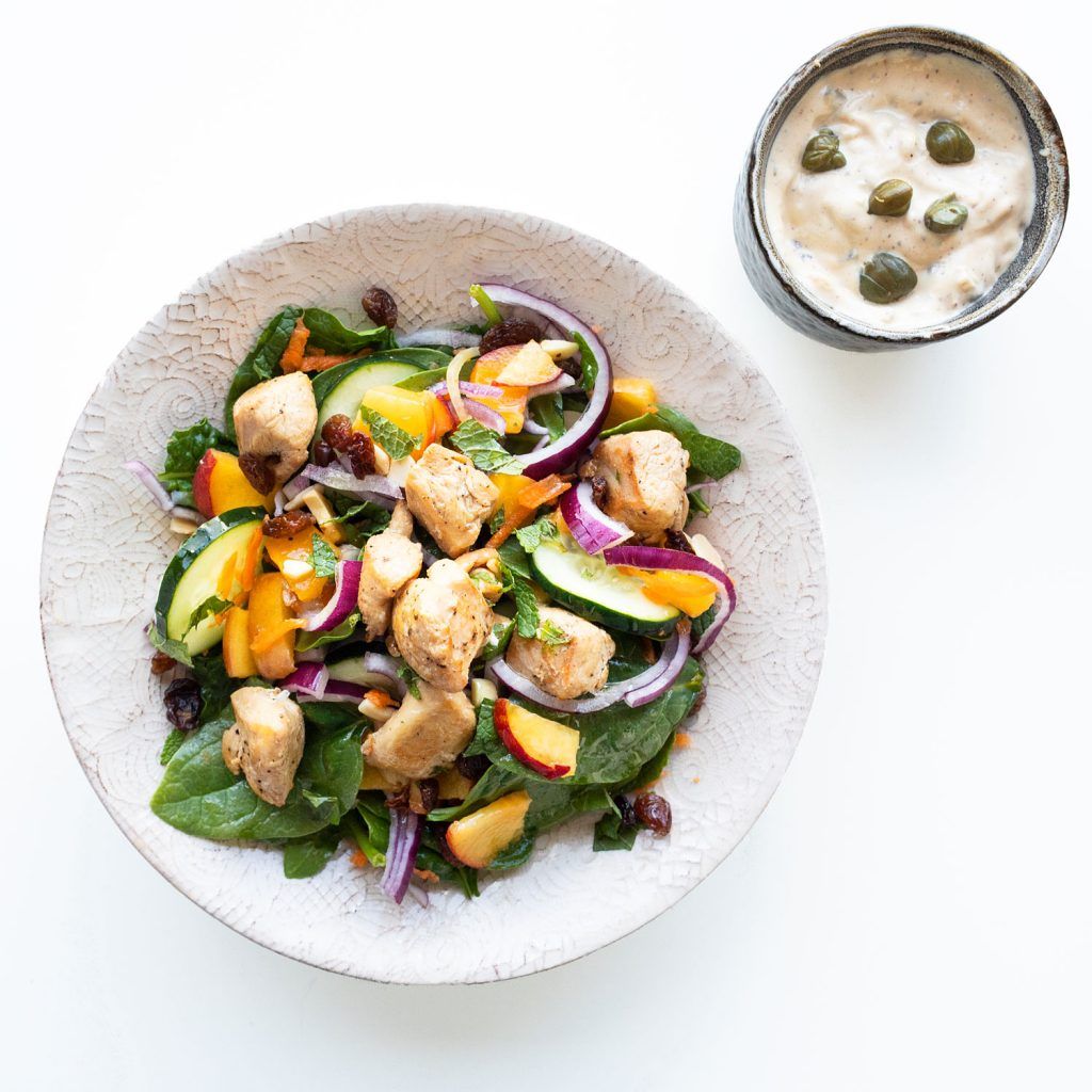 Ensalada de Pollo con Almendras, Melocotón y Espinacas