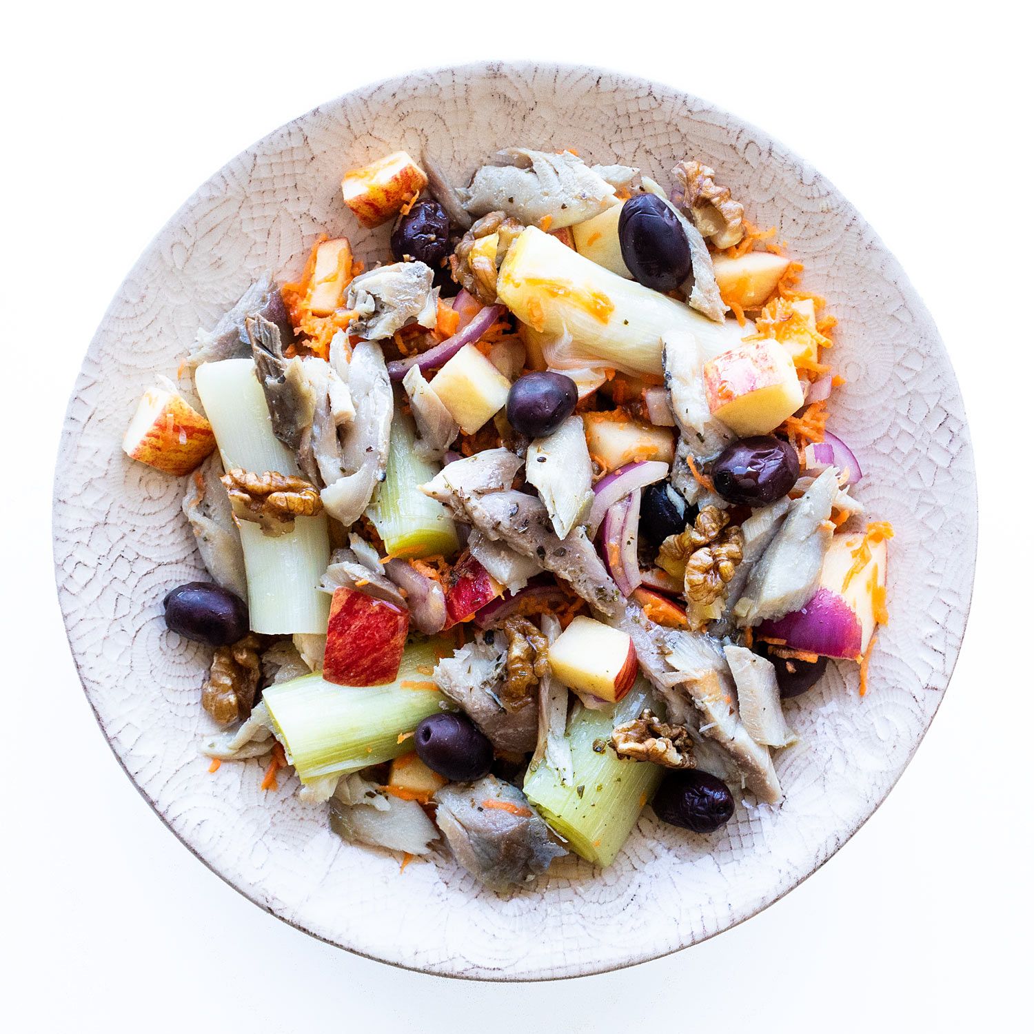 Coloca la caballa sobre la ensalada y sirve.