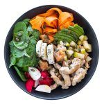 Coloca en el plato todos los ingredientes en pequeños montoncitos y aliña con el vinagre + 3 Tbsp aceite de oliva + ¼ tsp sal.