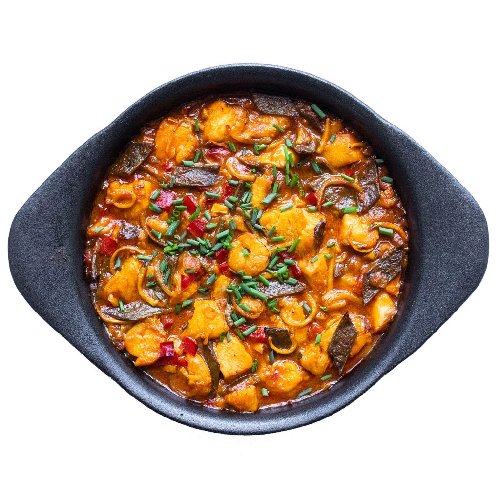 Añade la merluza + las gambas y cuece durante 8 minutos.