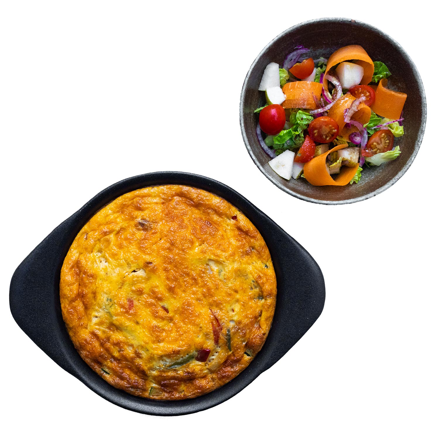 Bate en un bol los huevos + el resto de ingredientes y añade sobre las verduras, remueve.