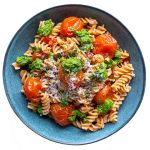 Escurre y enfría con agua bajo el grifo. Añade 1 tsp aceite de oliva y mezcla hasta integrar.