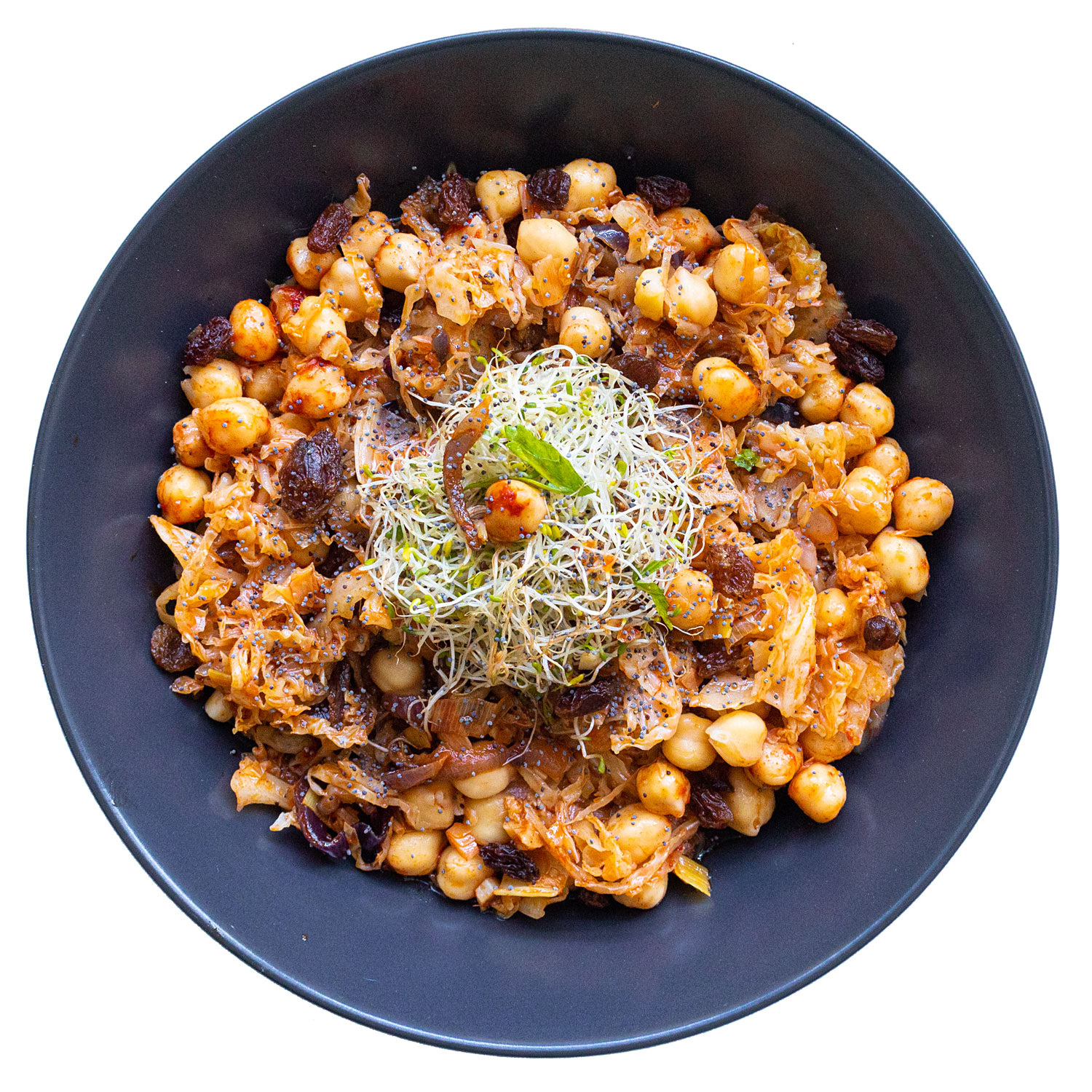 Añade los frutos secos + las pasas + el perejil y mezcla. Prueba el punto de sal.
