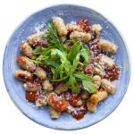 Sirve los gnocchi y espolvorea el parmesano. Acompaña con la rúcula.
