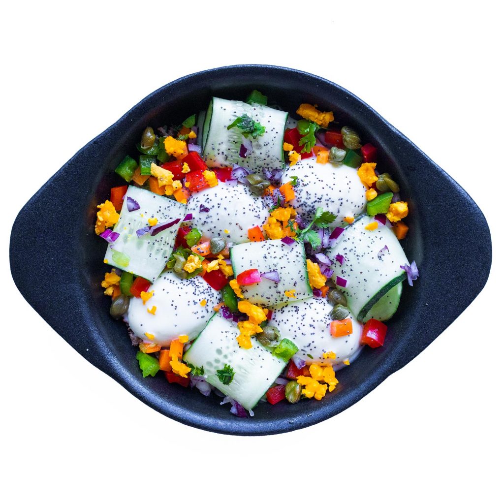 Espolvorea la yema + las alcaparras y sirve