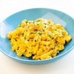 A la batidora con el puré de calabaza agrega los dientes de ajo asados y pelados + la levadura nutricional + todas las especias + la mostaza + el zumo de limón + la leche de coco + los anacardos remojados y tritura hasta que quede una salsa muy lisa y homogénea. Pruébala y ajusta de sal si lo necesitas.