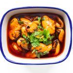 Cuando rompa a hervir, añade los mejillones. Pon la tapa y baja a fuego medio-bajo.