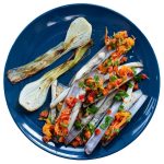 Sirve el picadillo sobre las navajas y acompaña con las cebolletas.