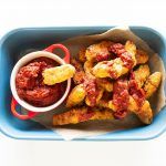Mete las tiras de pescado en el huevo batido y seguidamente en la mezcla del otro bol, asegurándote de que queda con una capa bien uniforme. Ve colocando los palitos sobre una rejilla mientras continúas con el resto.