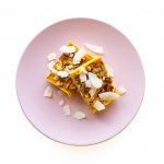 Corta en porciones y decora con los chips de coco. Sirve frío.