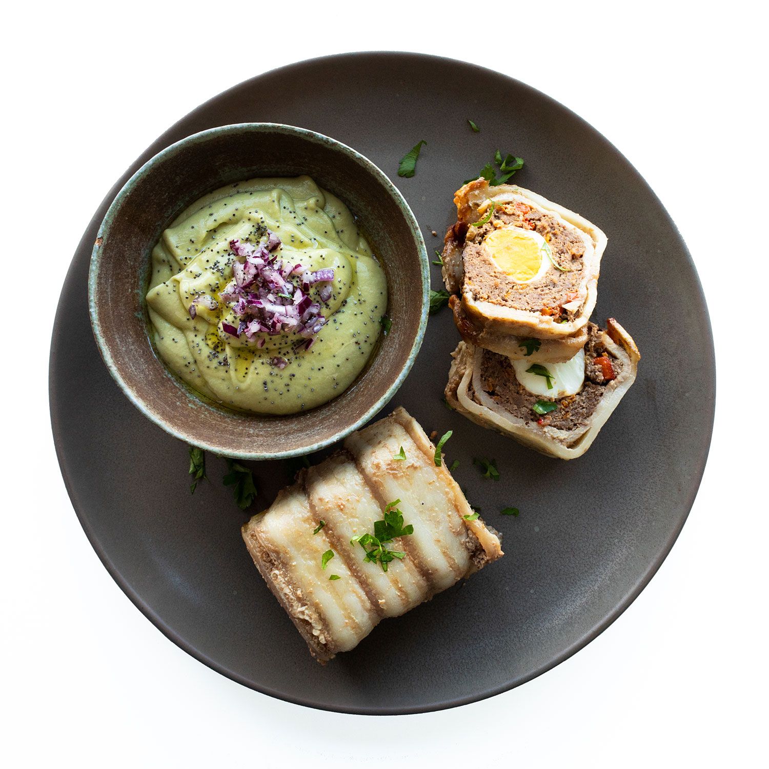 Reparte en boles. Decora con la cebolla y espolvorea las semillas de amapola.