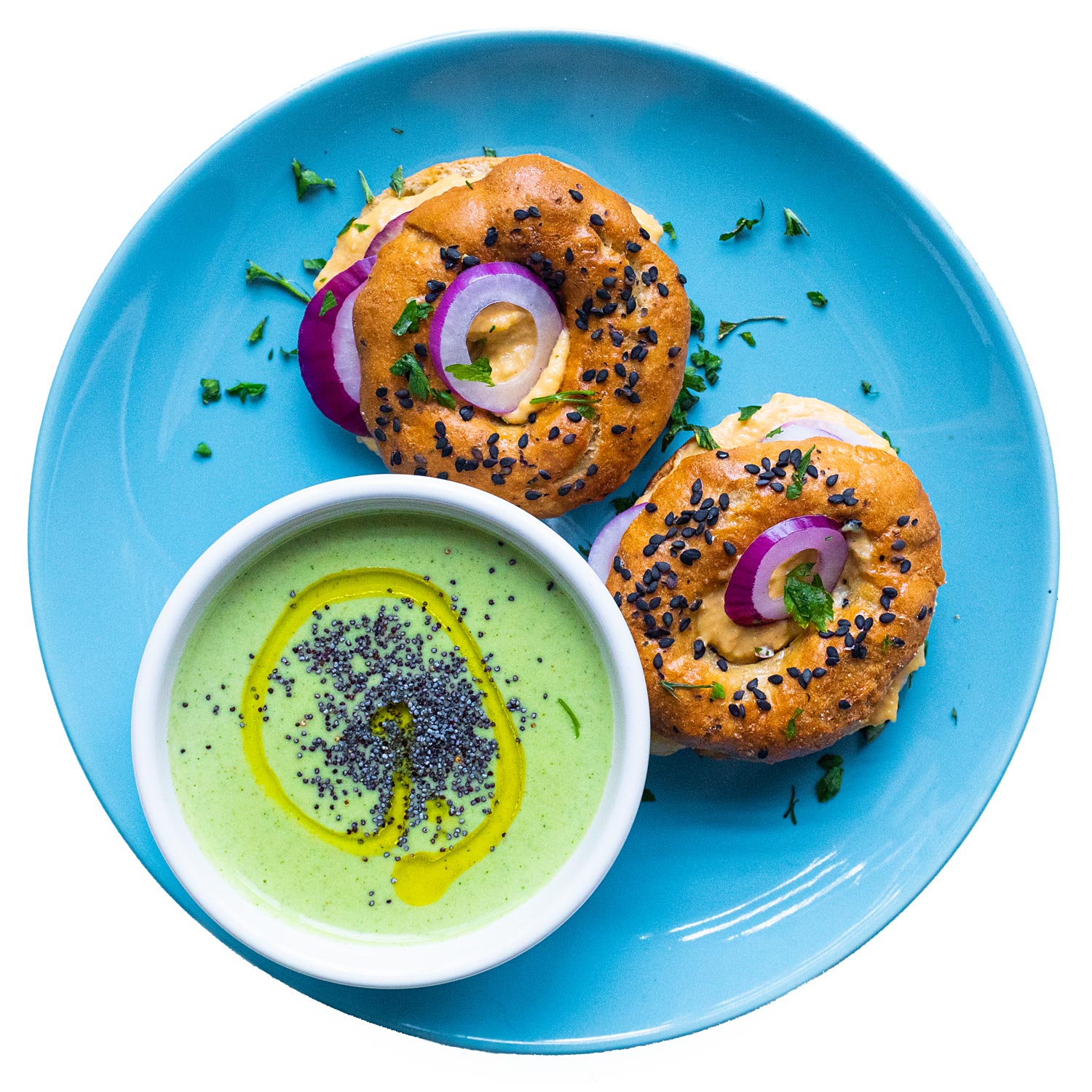 Corta los bagels abriendo por la mitad como si fueran un bocadillo.