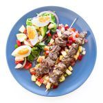Pinchos Morunos y Ensalada de Pimientos y Huevo
