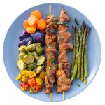 Sirve los pinchos con las verduras y decora con el cilantro.