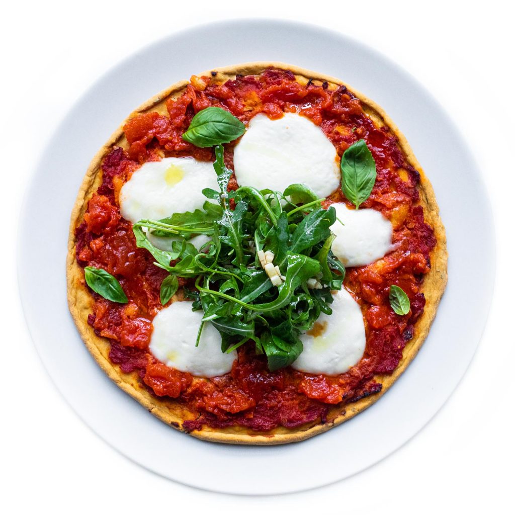 Sirve la pizza y decora con la albahaca. Acompaña con la ensalada.