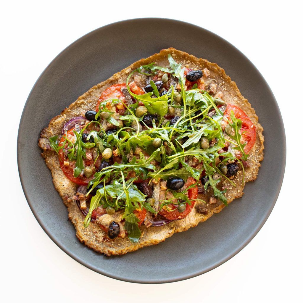 Pizza Putanesca con Anchoas, Alcaparras y Rúcula