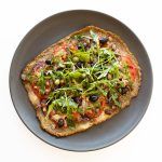 Aliña la rúcula y las alcaparras con el aceite de oliva + el vinagre balsámico + ⅛ tsp sal y coloca sobre la pizza cuando la saques del horno.