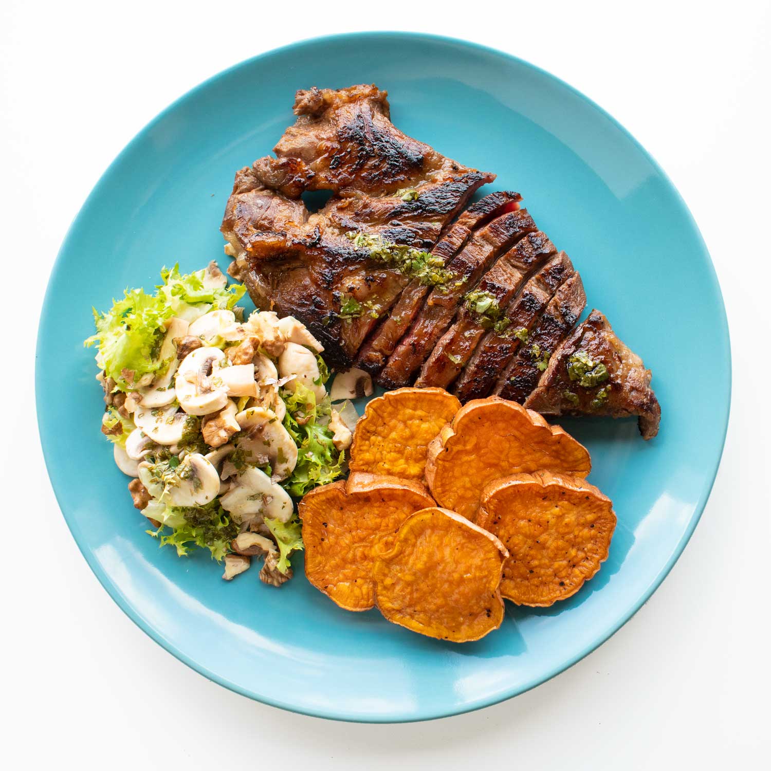 Coloca las rodajas de boniato y rocía con ⅓ cup aceite de oliva + la pimienta (sustituye por clavo molido para AIP) + ½ tsp sal y hornea a media altura unos 25 o 30 minutos. Comprueba que está bien cocinado pinchando con un cuchillo, debe entrar fácilmente.