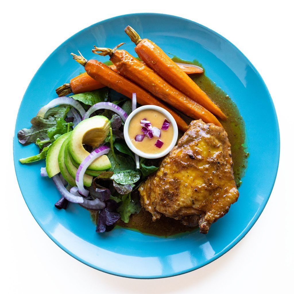 Pollo Asado Peruano y Zanahorias Glaseadas con Curry