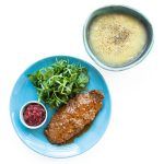 Sirve la presa con la salsa + la rúcula. Acompaña con la sopa.