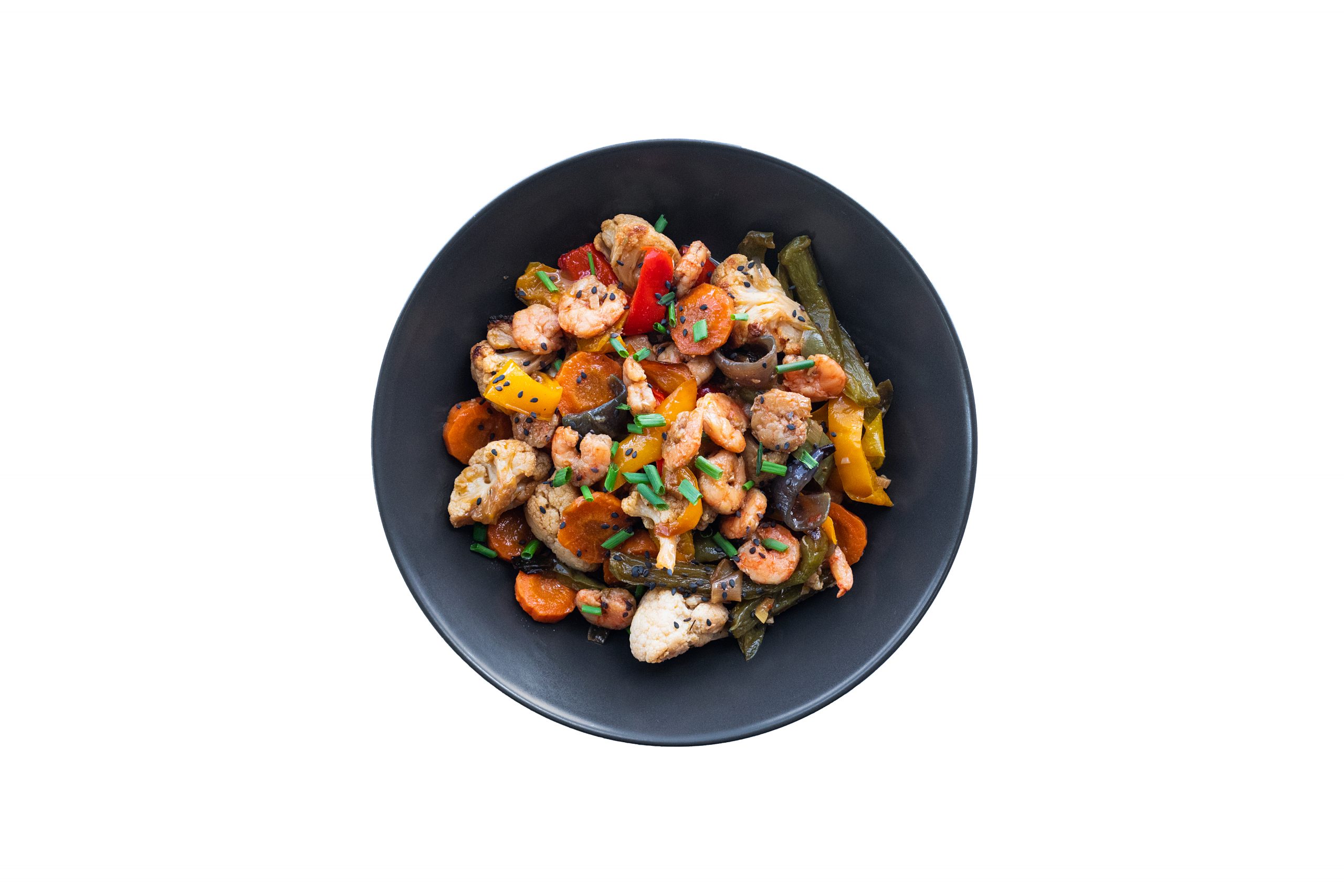 Sube un poco el fuego, añade el teriyaki y saltea durante 1 minuto más.