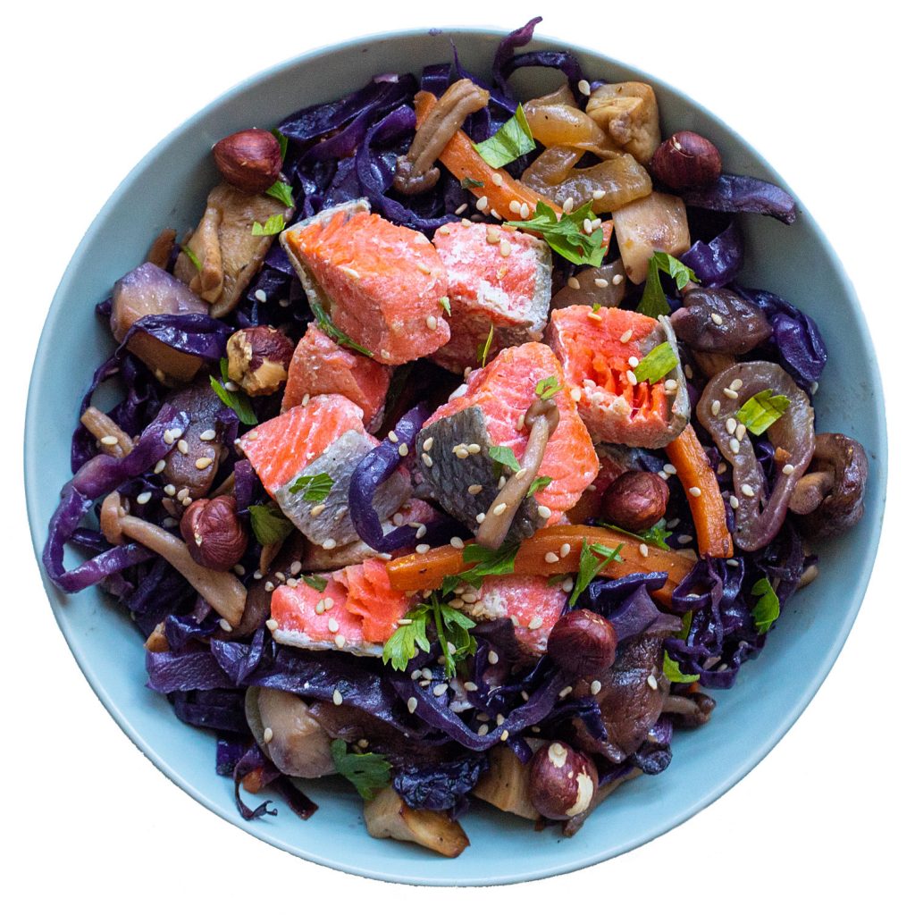 Salteado de Lombarda y Salmón