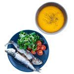 Decora las sardinas con el cilantro y sirve con la ensalada. Acompaña con la crema + las semillas.