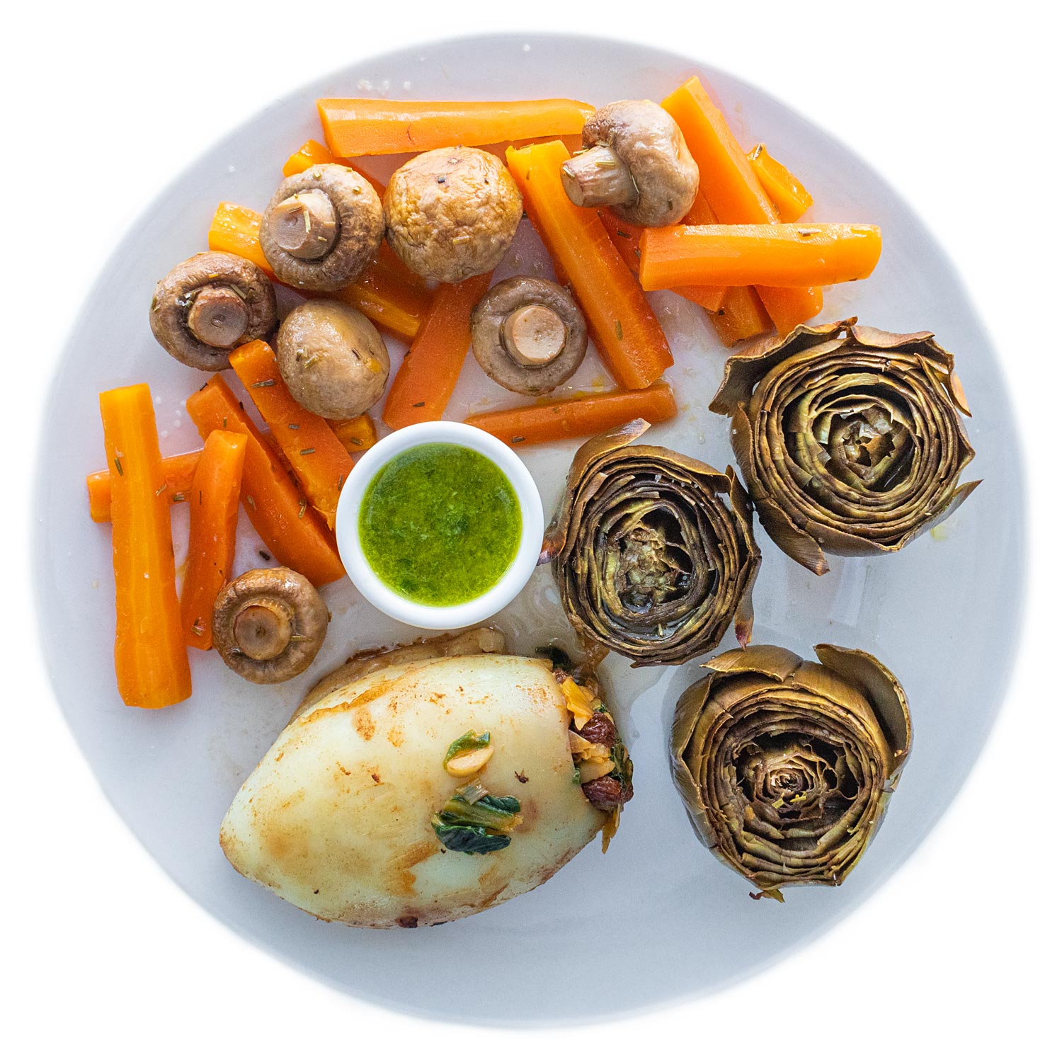 Rellena la sepia con las verduras y cierra con un palillo.