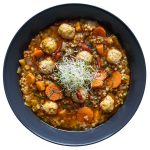 Añade las bolitas de pollo y cocina durante 6 minutos más o hasta que el interior esté cocido. Prueba el punto de sal.