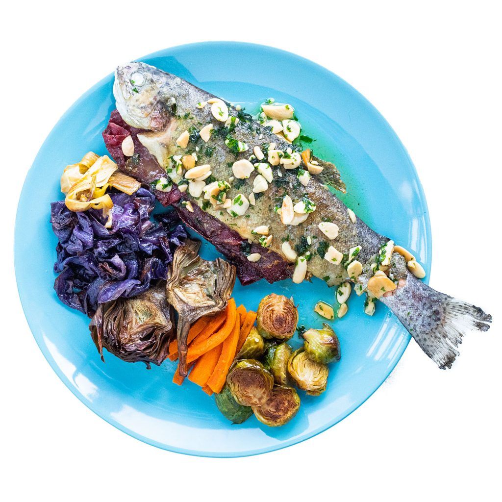 Añade a la sartén las almendras + el perejil y rehoga durante 30 segundos. Riega las truchas con la salsa. Retira los palillos.
