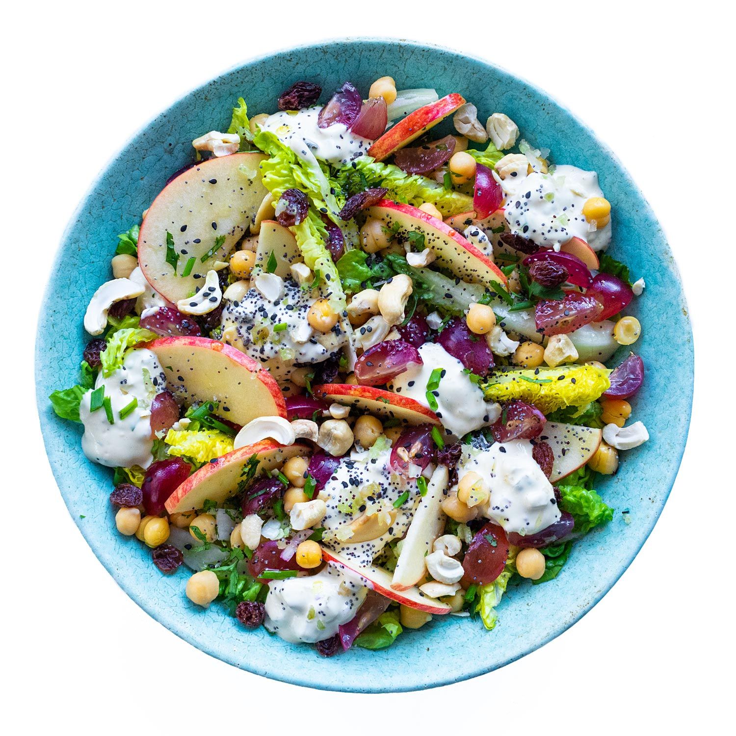 Mezcla en un bol los garbanzos + el resto de ingredientes y aliña con la salsa. Prueba el punto de sal y sirve.