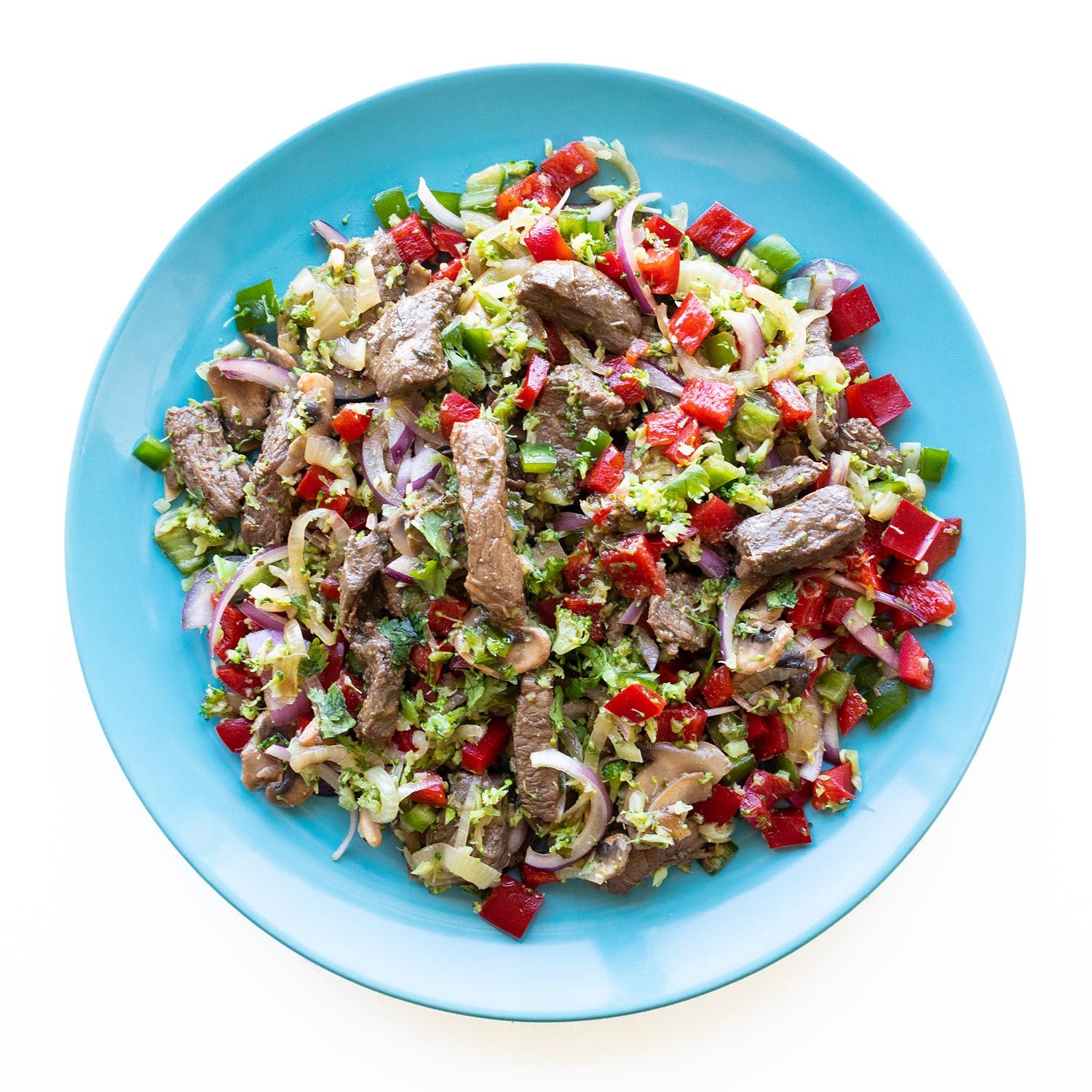 Añade las verduras + el tamari + ⅛ tsp sal y saltea durante 3-4 minutos. No las cocines en exceso, deben quedar al dente. Mezcla con la ternera y reserva.