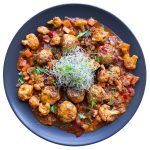 Sirve las albóndigas y decora con los brotes.