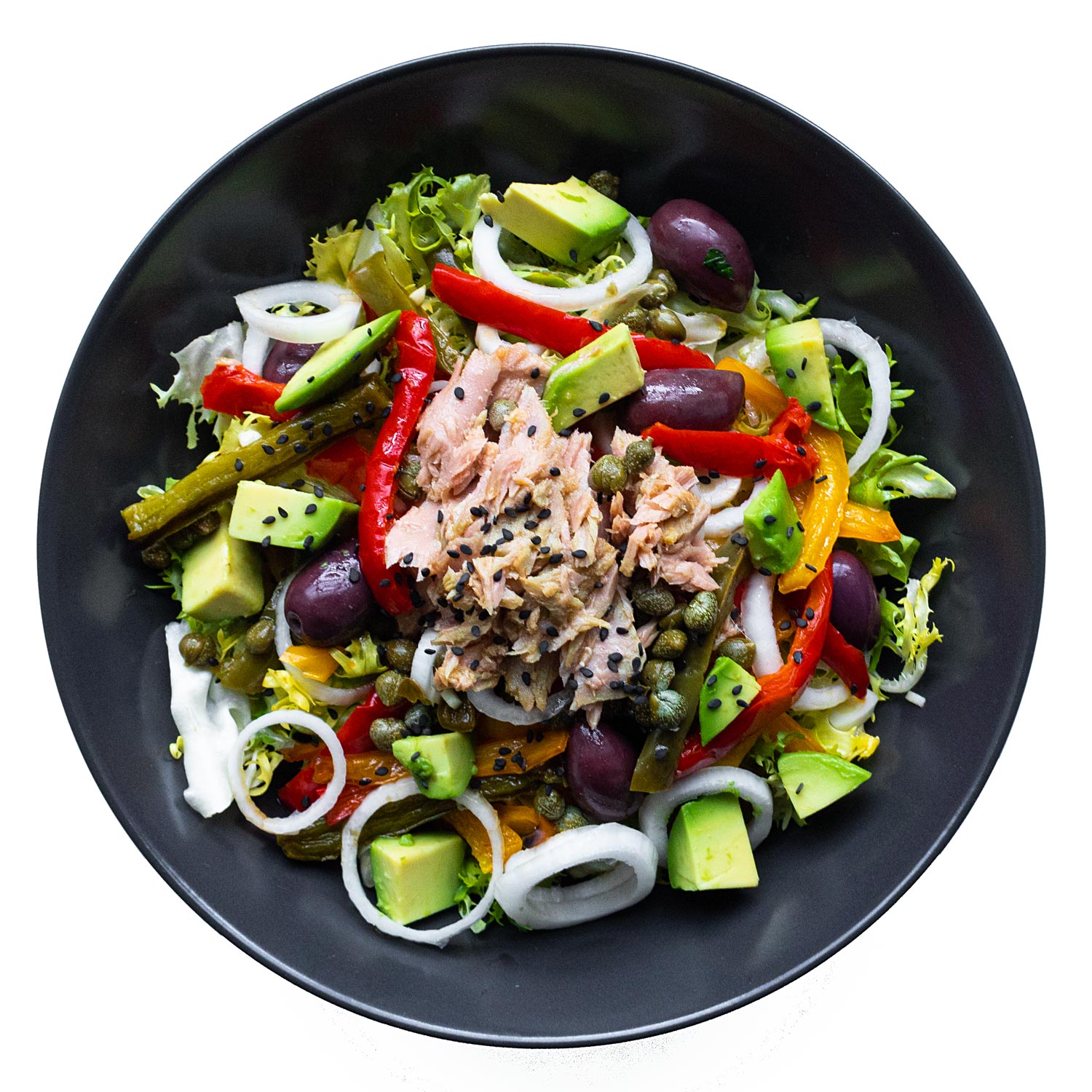 Mezcla en un bol todos los ingredientes + el pimiento y aliña. Puedes utilizar el aceite del atún.