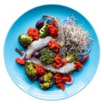 Salpimenta el pescado y rocía con el resto del aceite. Si quieres evitar manchar más utensilios, puedes cocinarlo en el horno junto al brócoli durante 10-12 minutos más. O si prefieres, puedes rebozar en la harina y freír en una sartén durante 2 minutos por cada lado.